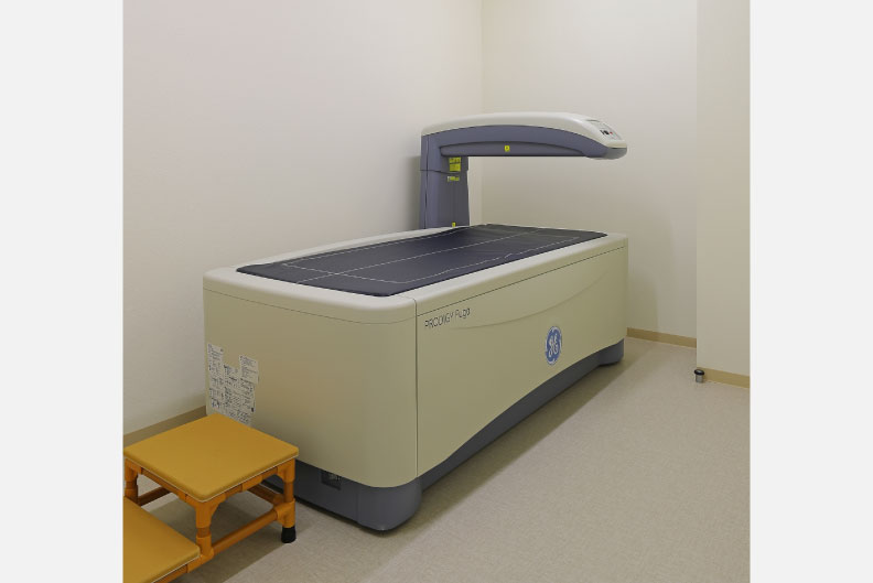 腰と太ももの骨の測定を15分程で行います。骨密度に関する採血検査を行う事で、さらに詳しい骨密度の診断ができます。検査結果に応じて、予防や治療を行っています。